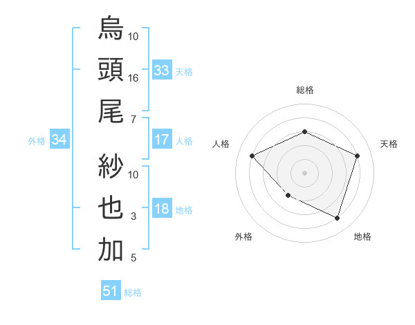 烏頭尾 紗也加さんを姓名の画数から五運を鑑定