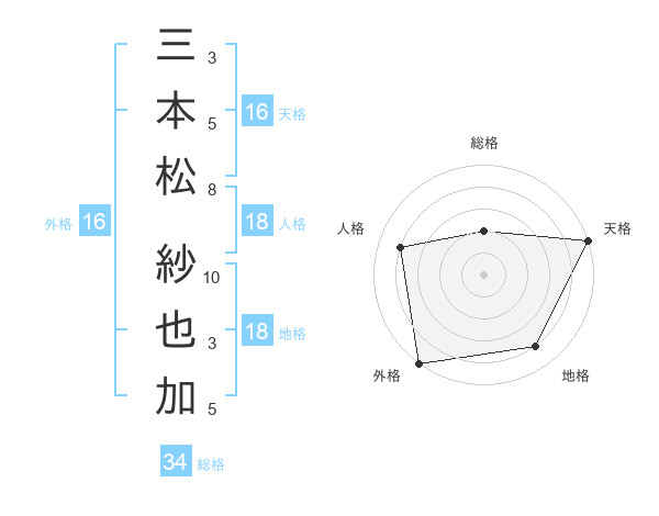 三本松 紗也加さんを姓名の画数から五運を鑑定