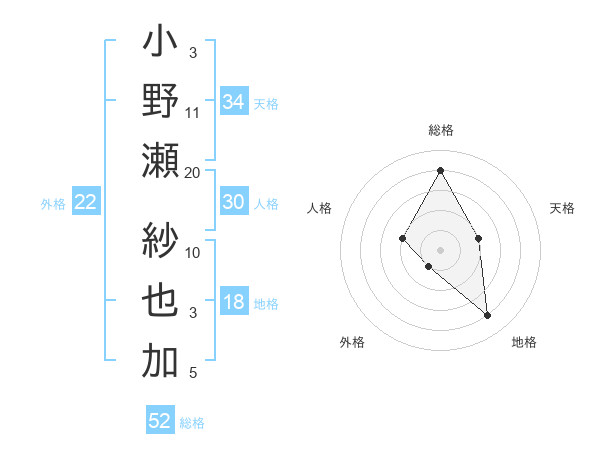 小野瀬 紗也加さんを姓名の画数から五運を鑑定