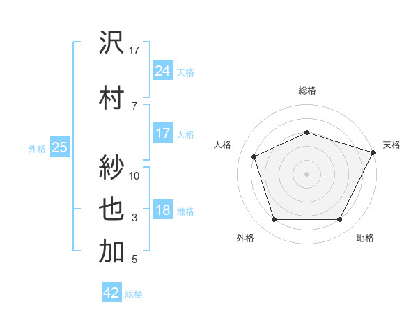 沢村 紗也加さんを姓名の画数から五運を鑑定