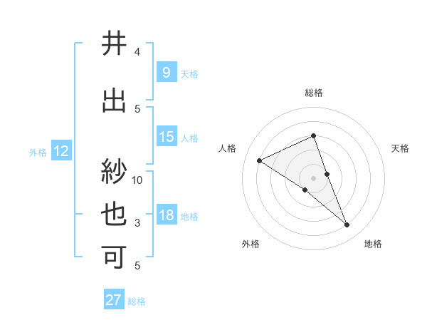 井出 紗也可さんの総格は27画の3点!