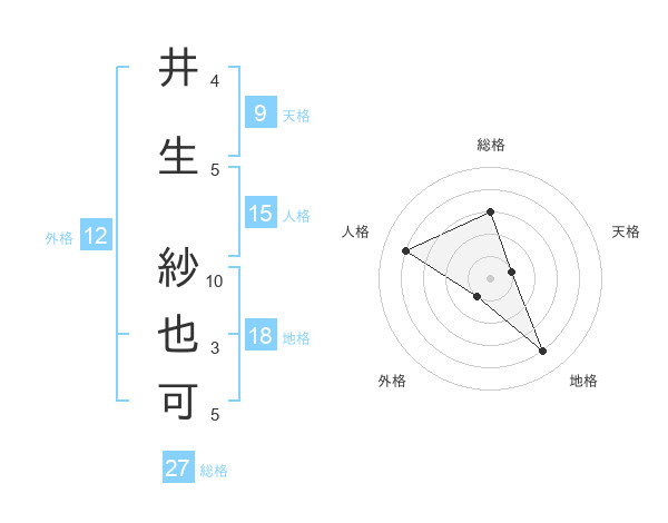 井生 紗也可さんを姓名の画数から五運を鑑定