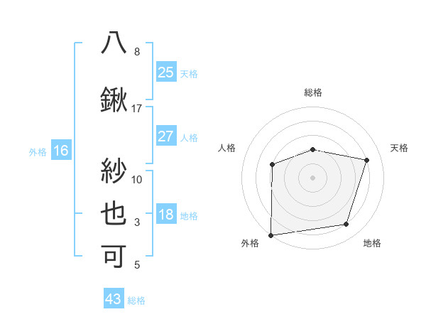 八鍬 紗也可さんを姓名の画数から五運を鑑定