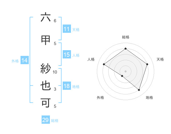 六甲 紗也可さんを姓名の画数から五運を鑑定