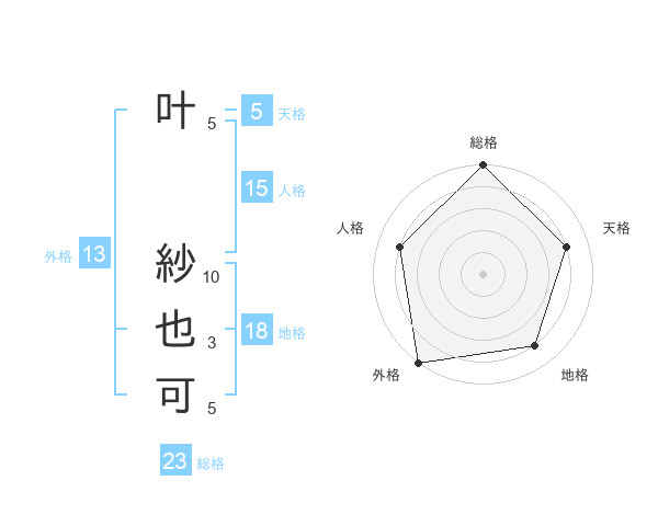 叶 紗也可さんの総格は23画の5点!
