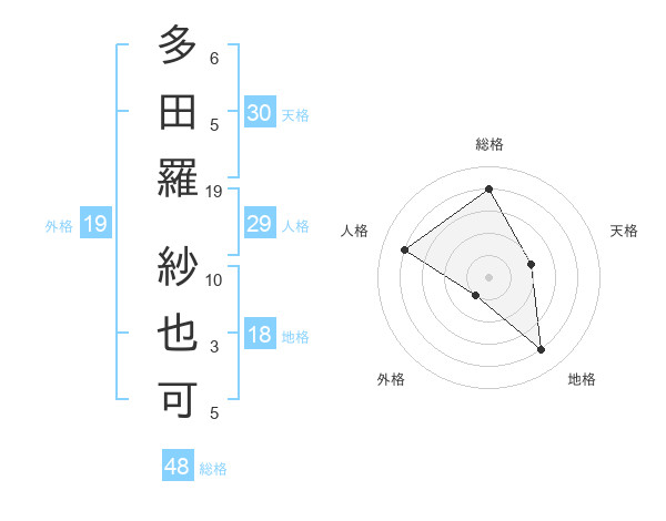 多田羅 紗也可さんを姓名の画数から五運を鑑定