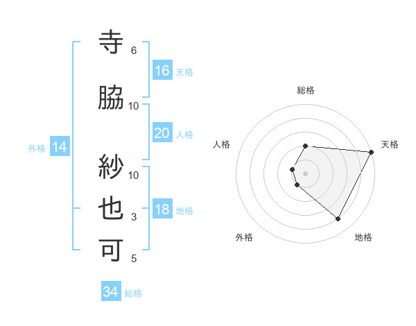 寺脇 紗也可さんの天格は16画の5点!