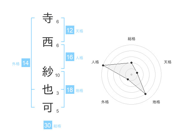 寺西 紗也可さんの天格は12画の1点!