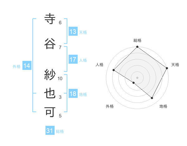 寺谷 紗也可さんを姓名の画数から五運を鑑定