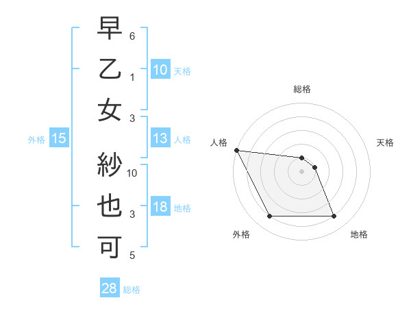 早乙女 紗也可さんを姓名の画数から五運を鑑定