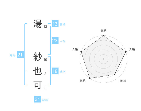湯 紗也可さんの総格は31画の5点!