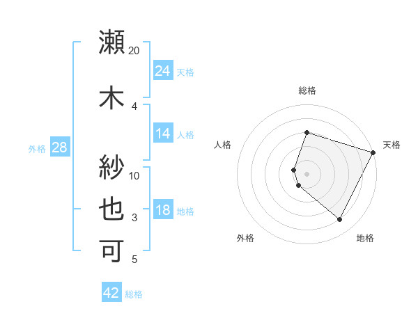 瀬木 紗也可さんを姓名の画数から五運を鑑定