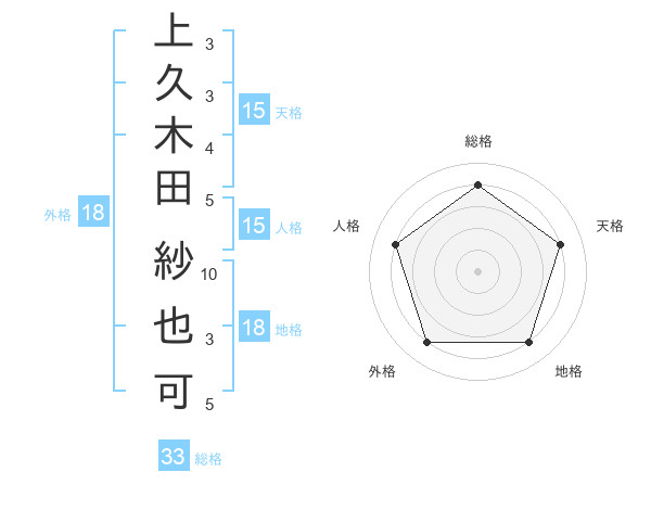 上久木田 紗也可さんを姓名の画数から五運を鑑定