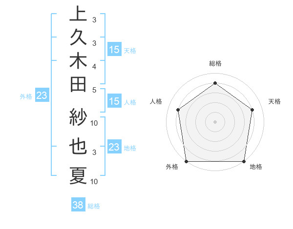 上久木田 紗也夏さんの外格は23画の5点