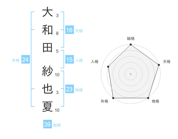大和田 紗也夏さんを姓名の画数から五運を鑑定