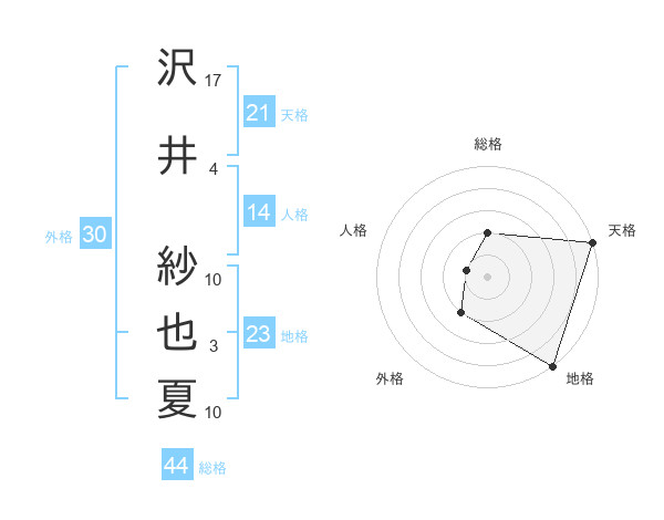 沢井 紗也夏さんを姓名の画数から五運を鑑定