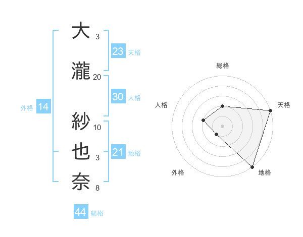 大瀧 紗也奈さんの天格は23画の5点!
