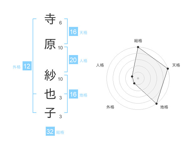 寺原 紗也子さんの天格は16画の5点!