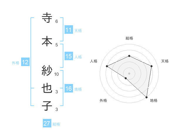 寺本 紗也子さんを姓名の画数から五運を鑑定