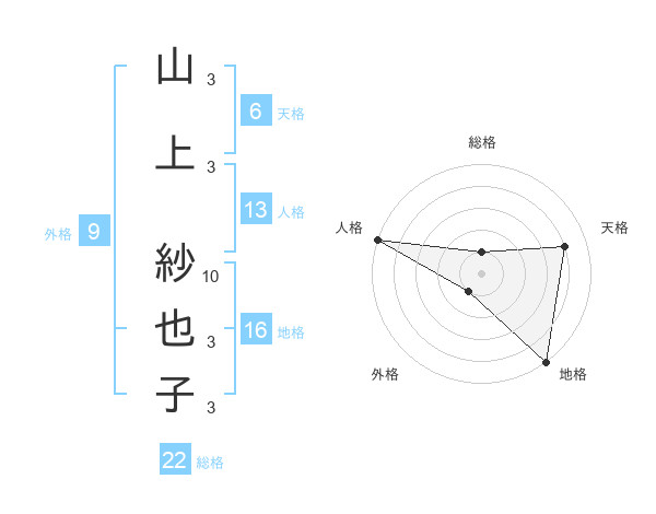 山上 紗也子さんを姓名の画数から五運を鑑定
