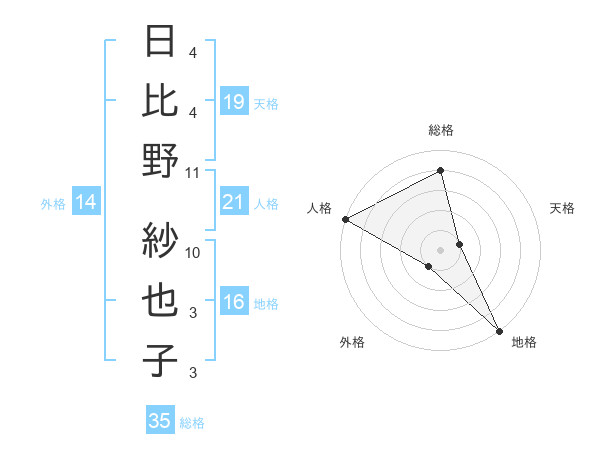 日比野 紗也子さんの総格は35画の4点!