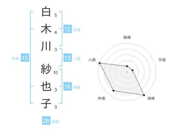 白木川 紗也子さんを姓名の画数から五運を鑑定