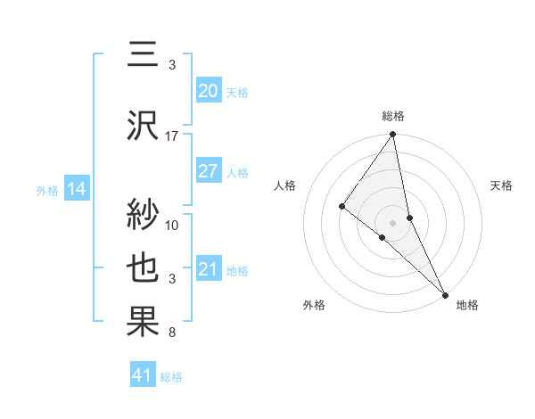 三沢 紗也果さんの天格は20画の1点
