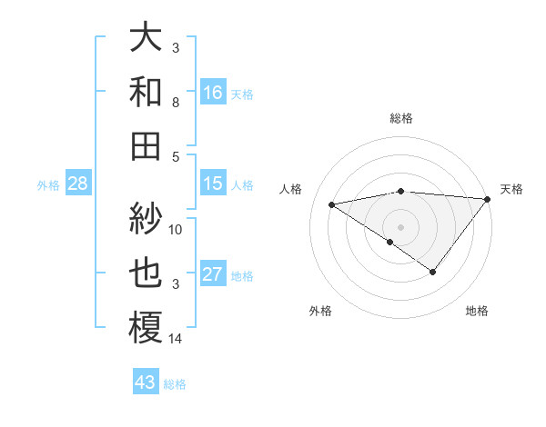 大和田 紗也榎さんを姓名の画数から五運を鑑定