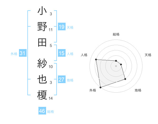 小野田 紗也榎さんを姓名の画数から五運を鑑定
