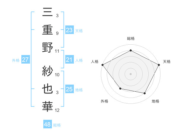 三重野 紗也華さんを姓名の画数から五運を鑑定