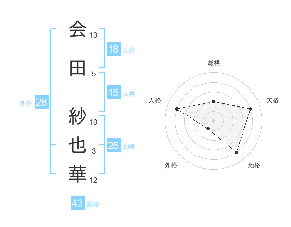 会田 紗也華さんを姓名の画数から五運を鑑定