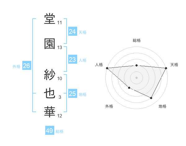 堂園 紗也華さんを姓名の画数から五運を鑑定