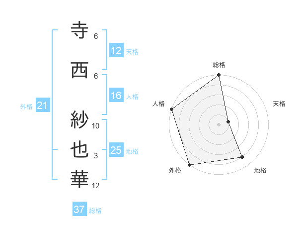 寺西 紗也華さんを姓名の画数から五運を鑑定