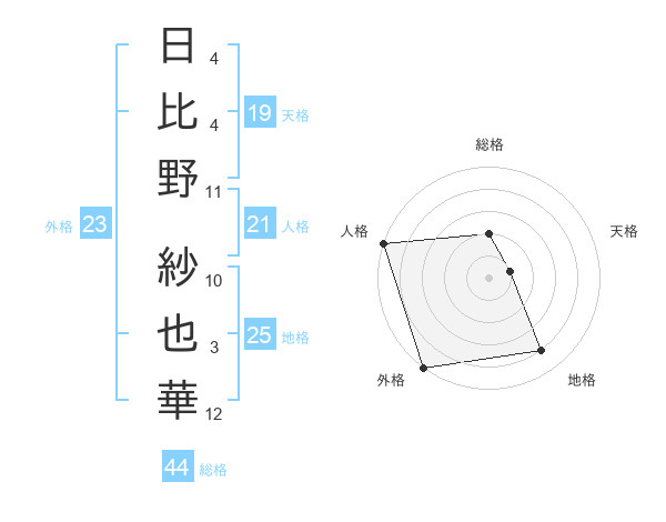 日比野 紗也華さんを姓名の画数から五運を鑑定