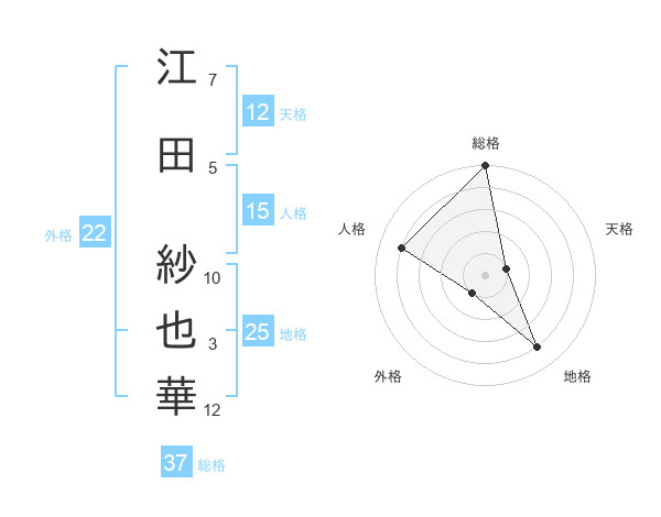 江田 紗也華さんを姓名の画数から五運を鑑定
