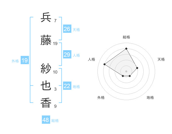 兵藤 紗也香さんを姓名の画数から五運を鑑定