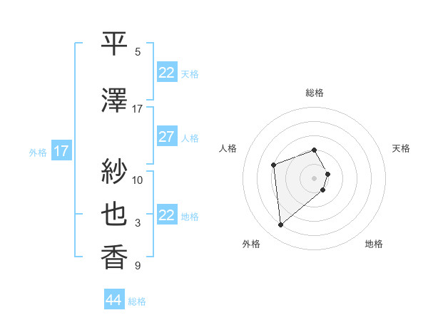 平澤 紗也香さんの天格は22画の1点!
