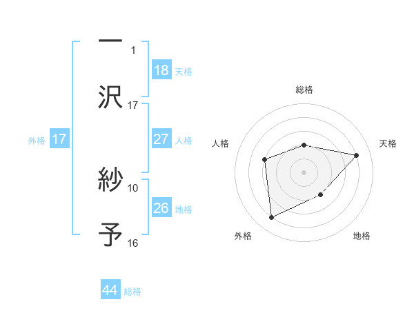 一沢 紗予さんの総格は44画の2点!