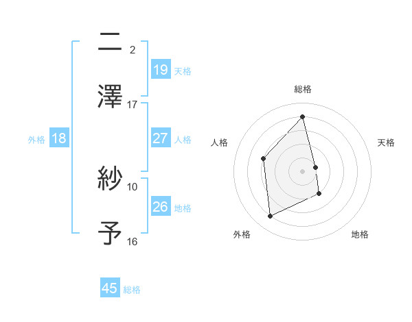 二澤 紗予さんの総格は45画の4点!