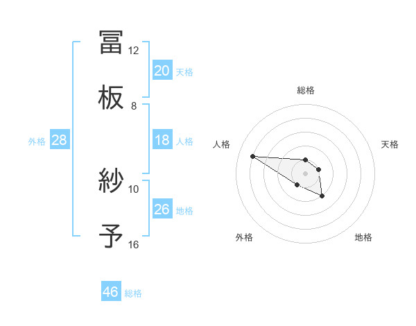 冨板 紗予さんの総格は46画の1点!