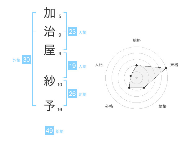 加治屋 紗予さんを姓名の画数から五運を鑑定