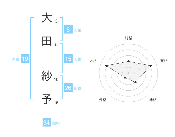 大田 紗予さんの天格は8画の4点!