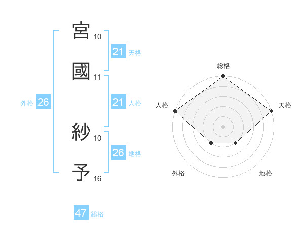 宮國 紗予さんの天格は21画の5点!