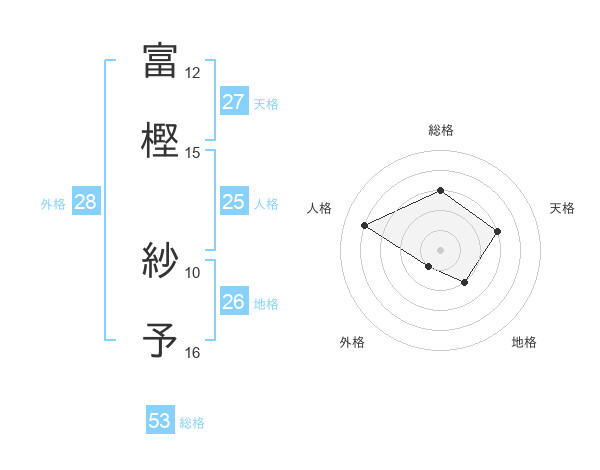 富樫 紗予さんの総格は53画の3点!