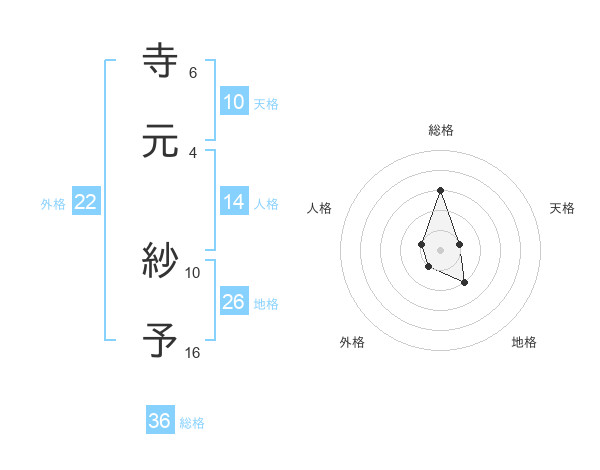 寺元 紗予さんの外格は22画の1点!