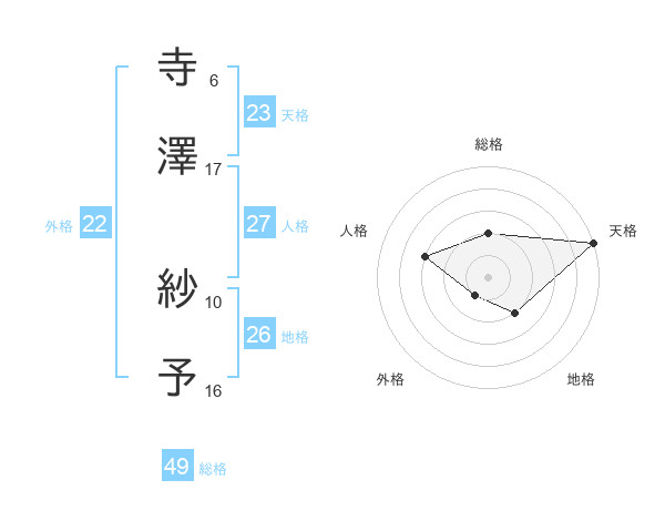 寺澤 紗予さんを姓名の画数から五運を鑑定