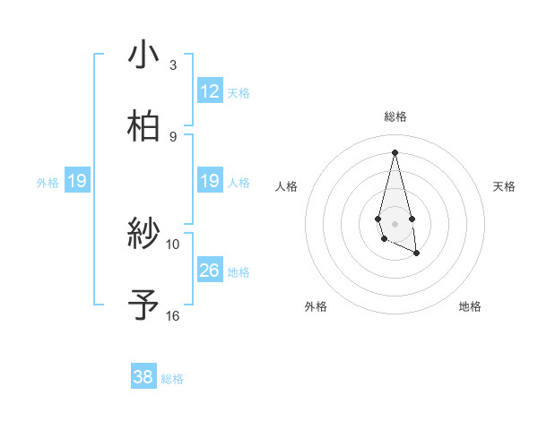 小柏 紗予さんの総格は38画の4点!