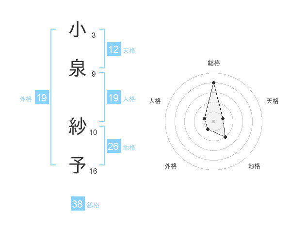 小泉 紗予さんの総格は38画の4点!