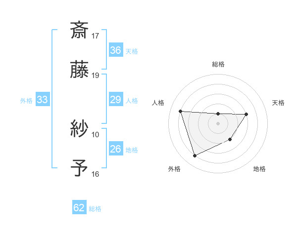 斎藤 紗予さんの天格は36画の3点!