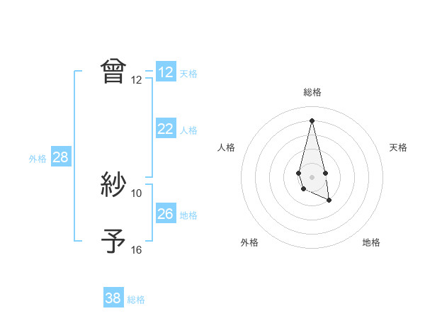 曾 紗予さんの総格は38画の4点!